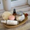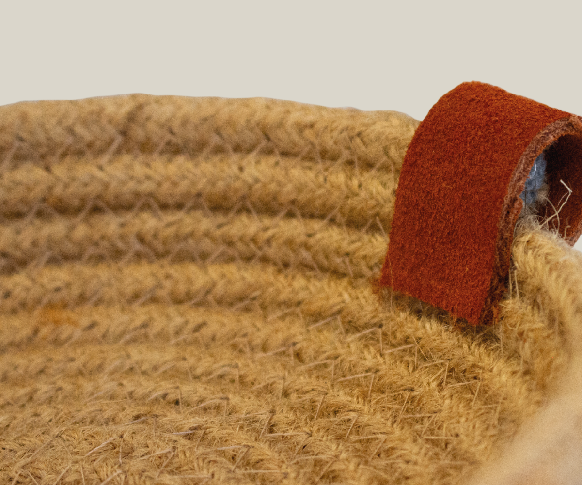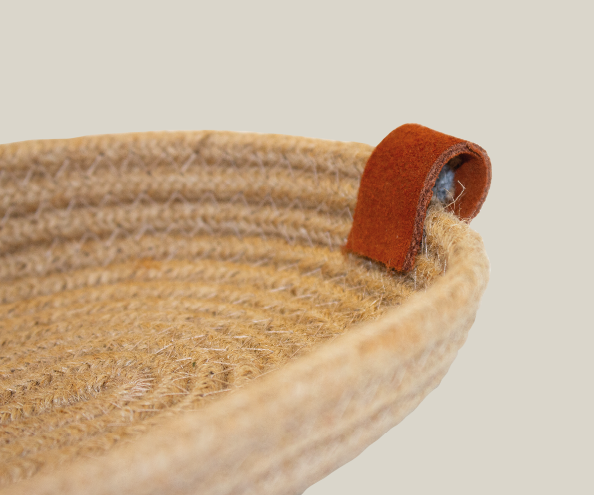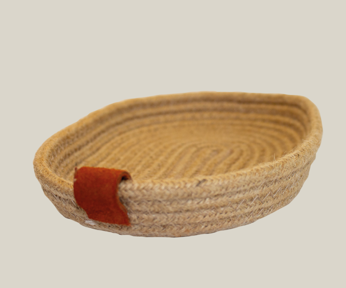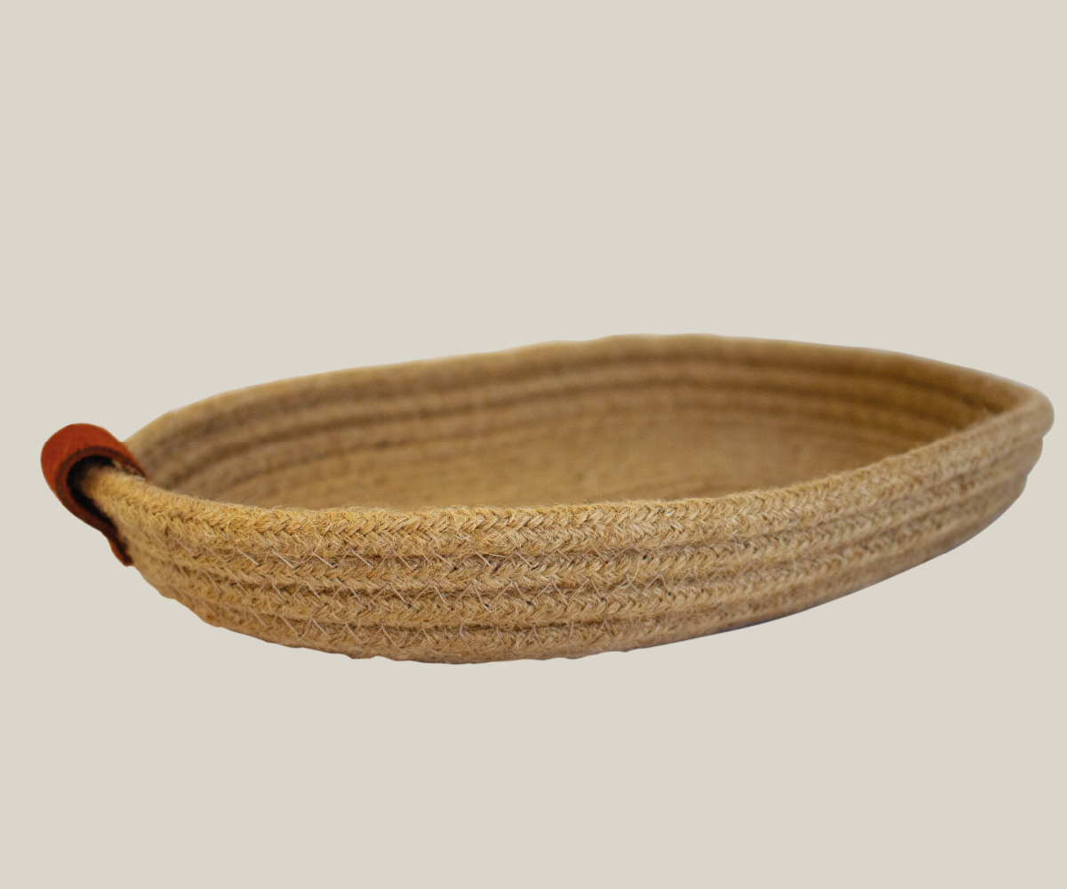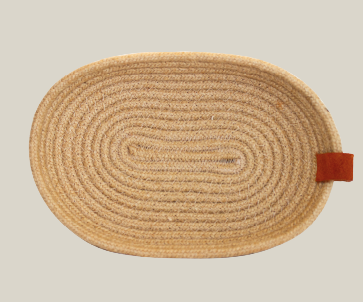 CESTA DE YUTE 14cm ancho x 22cm largo x 3cm alto.