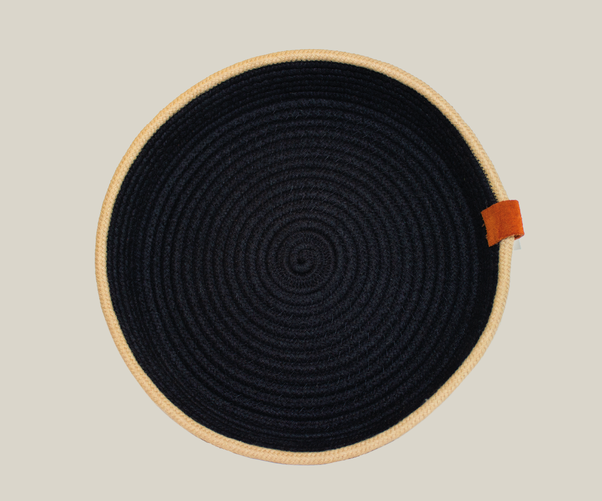 CESTA 24cm diámetro x 5cm DE ALTO, COLOR NEGRO.